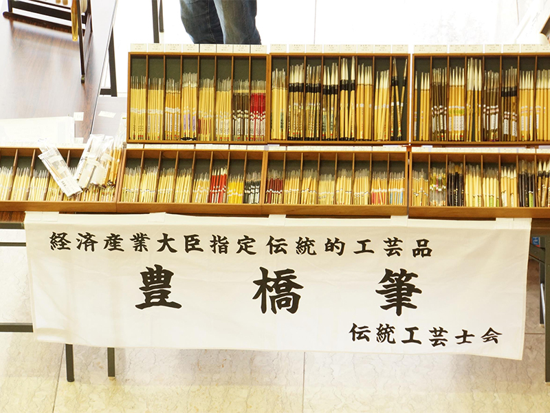 豊橋筆のブースでは豊橋筆の販売や⾊々な筆の書き⽐べ体験が開催されました。実際に筆をとって書く機会でしたので、私もこの機会に少し遅めの書き初めを行いました。