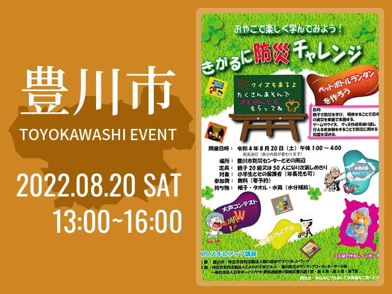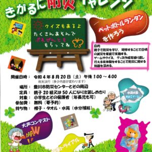 夏休みにおやこで楽しく防災を学べるイベントを開催します。