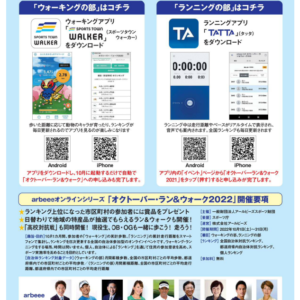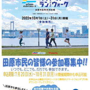 走行・歩行距離を全国個人ランキングや全国市区町村対抗ランキングなどの様々なランキングで競うオンラインイベント「オクトーバー・ランアンドウォーク2022」の参加者を募集します。