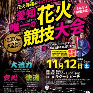 愛知県内唯一の花火競技大会で来場者に笑顔になっていただきたい、市民が発信する力で愛知を盛り上げたい、花火師が挑戦できる機会を提供したい、様々な想いをカタチにすべく私たちも挑戦していきますので、是非ご期待ください。