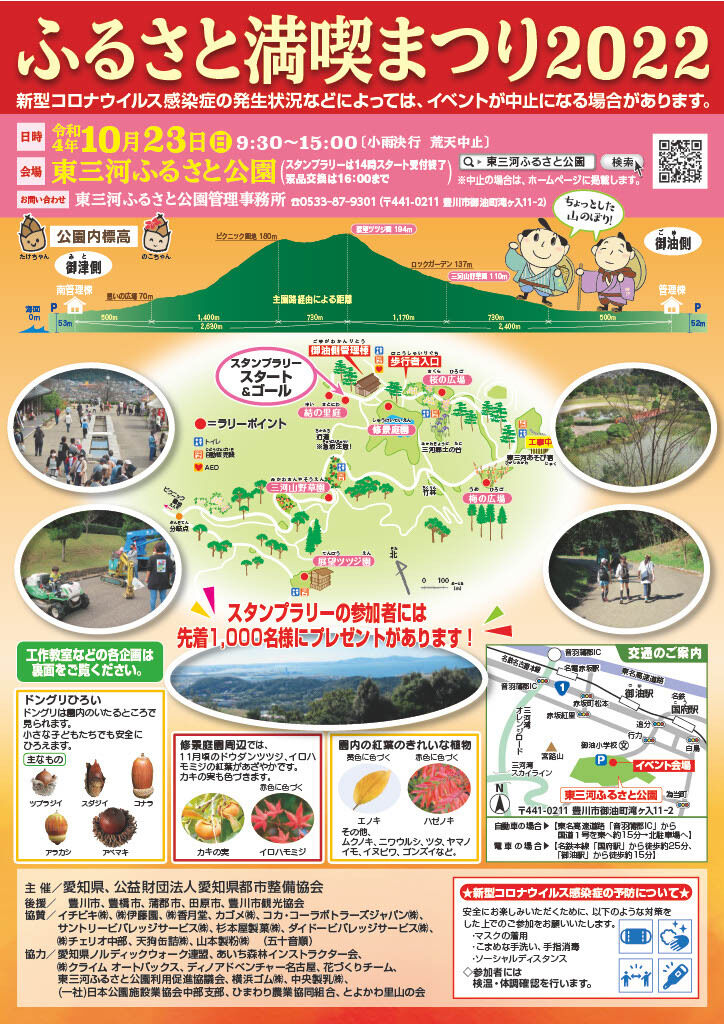2022年10月23日(日)東三河ふるさと公園にて、「ふるさと満喫まつり2022」が開催されます。スタンプラリーなど楽しいイベントがたくさん!!