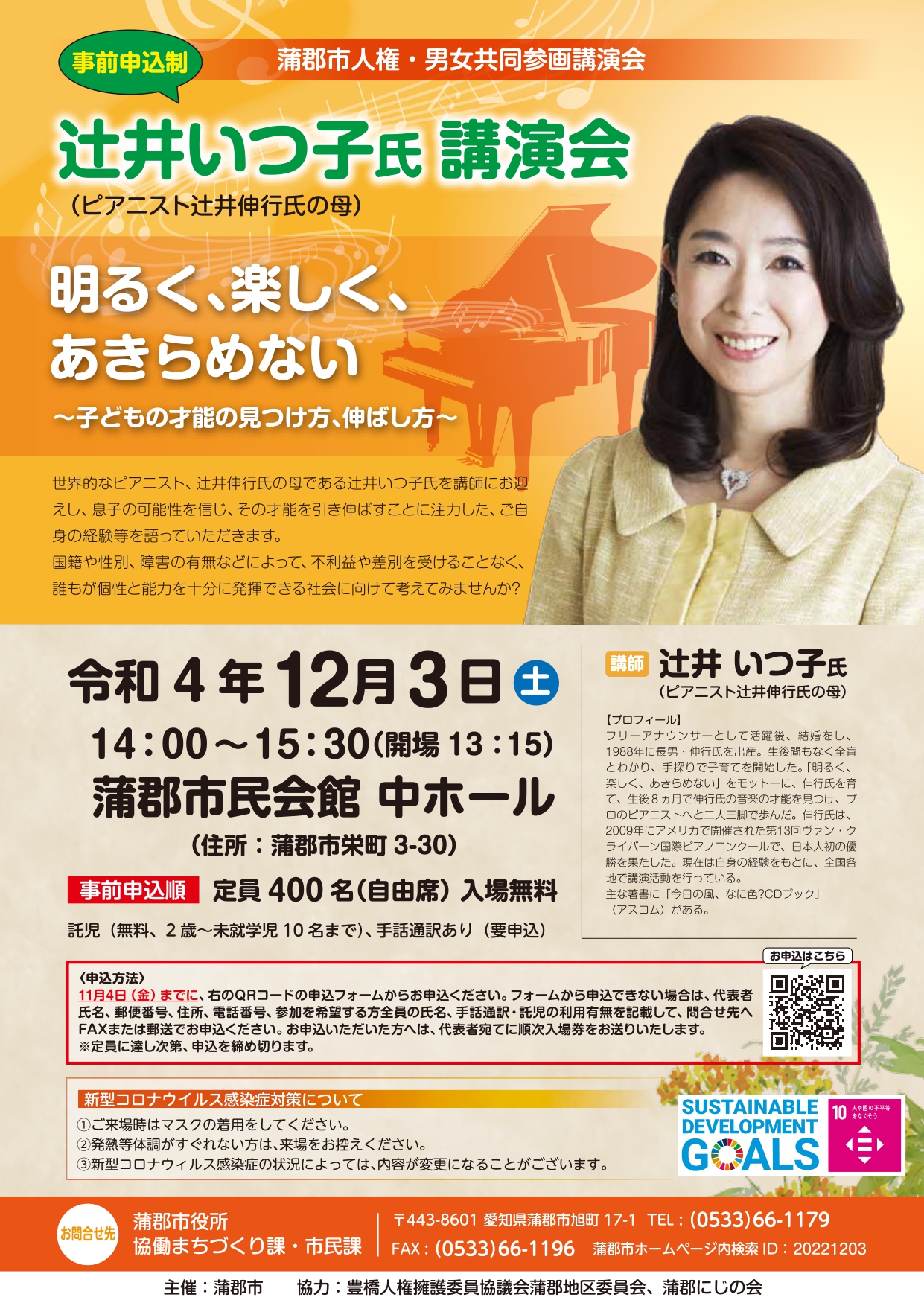 蒲郡市人権・男女共同参画講演会(辻井いつ子氏講演会)