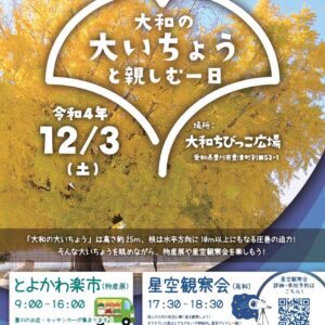 大和の大いちょうが黄色く色づくタイミングで大和ちびっこ広場にて星空観察会を実施します。