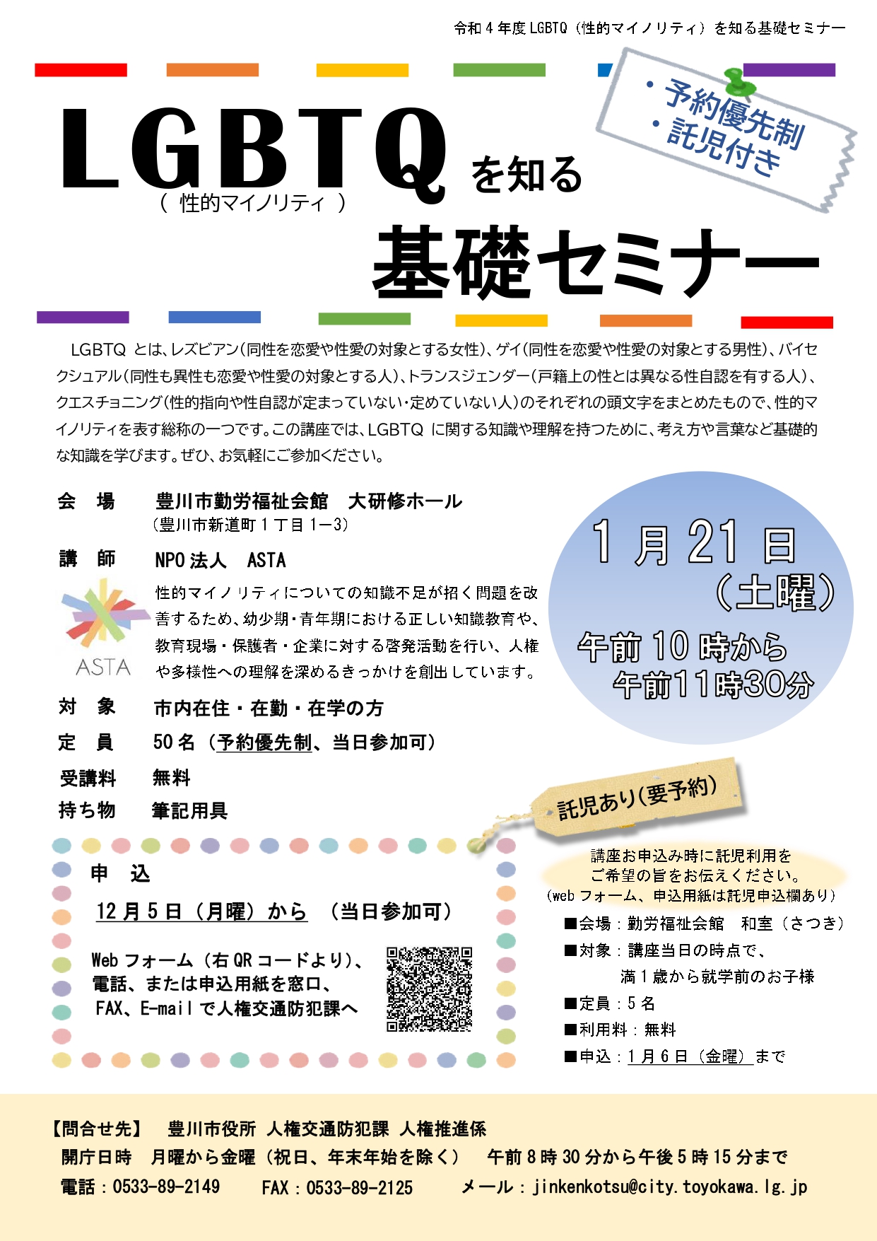 「LGBTQ(性的マイノリティ)を知る基礎セミナー」