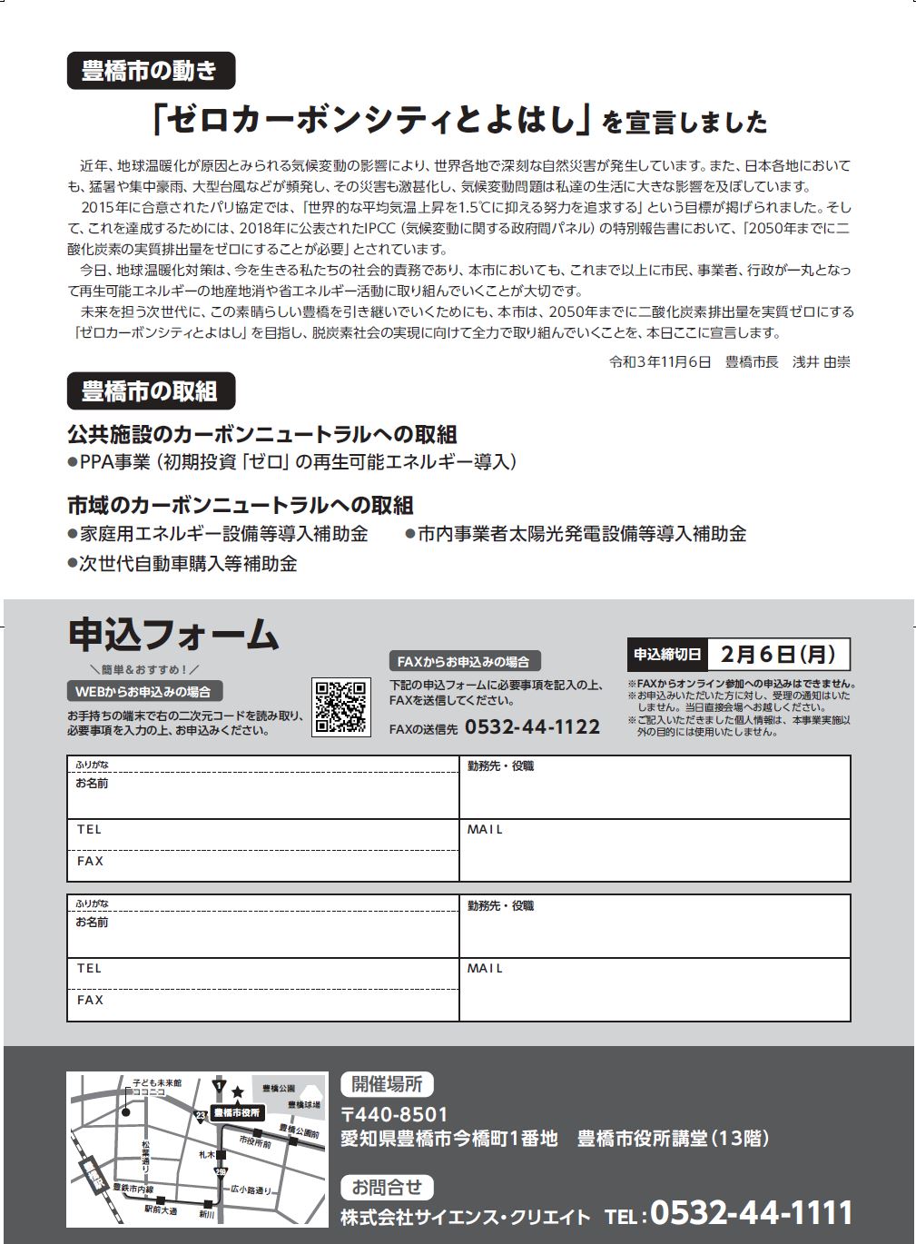 今回は、省エネの進め方や豊橋市の太陽エネルギーのポテンシャル、豊橋市の取組事例と補助制度の紹介をとおして、事業者の皆様、市民の皆さまと一緒にカーボンニュートラル推進に対する理解を深めます。