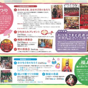 おひなさまの出張展示を下記の施設で行います。休館日、開館時間等は各施設のホームページでご確認ください。