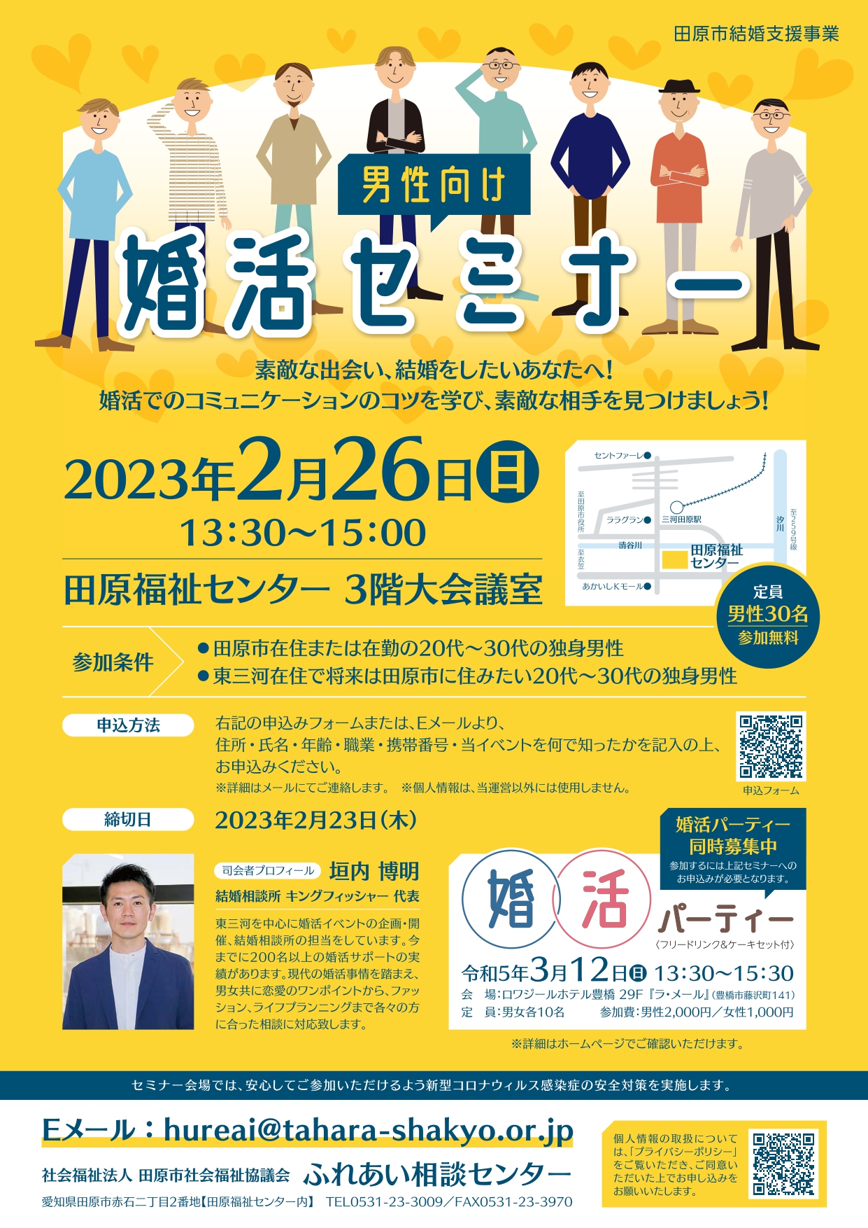 田原市在住または在勤の20代~30代の独身男性または東三河在住で将来は田原市に住みたい20代~30代の独身男性
