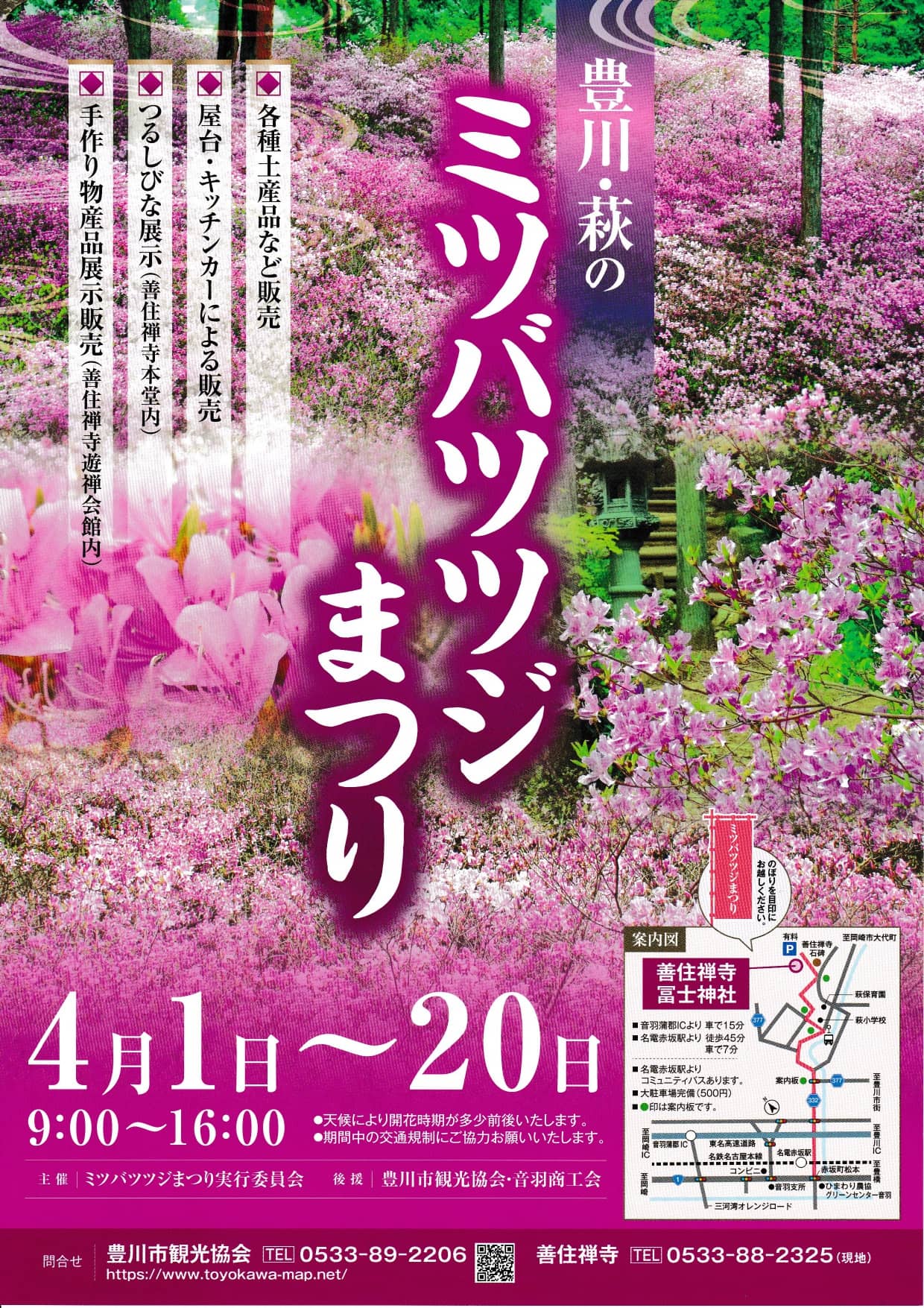 | お問い合わせ | 善住禅寺 TEL:0533-88-2325 豊川市観光協会 TEL 0533-89-2206 |