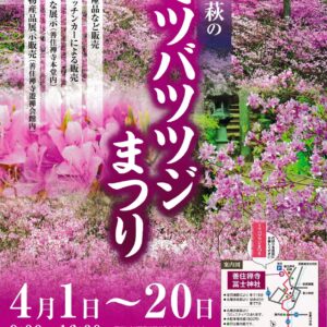 冨士神社・善住禅寺周辺に群生しているコバノミツバツツジの開花にあわせて、特産品、野点、各種露店などがあります。