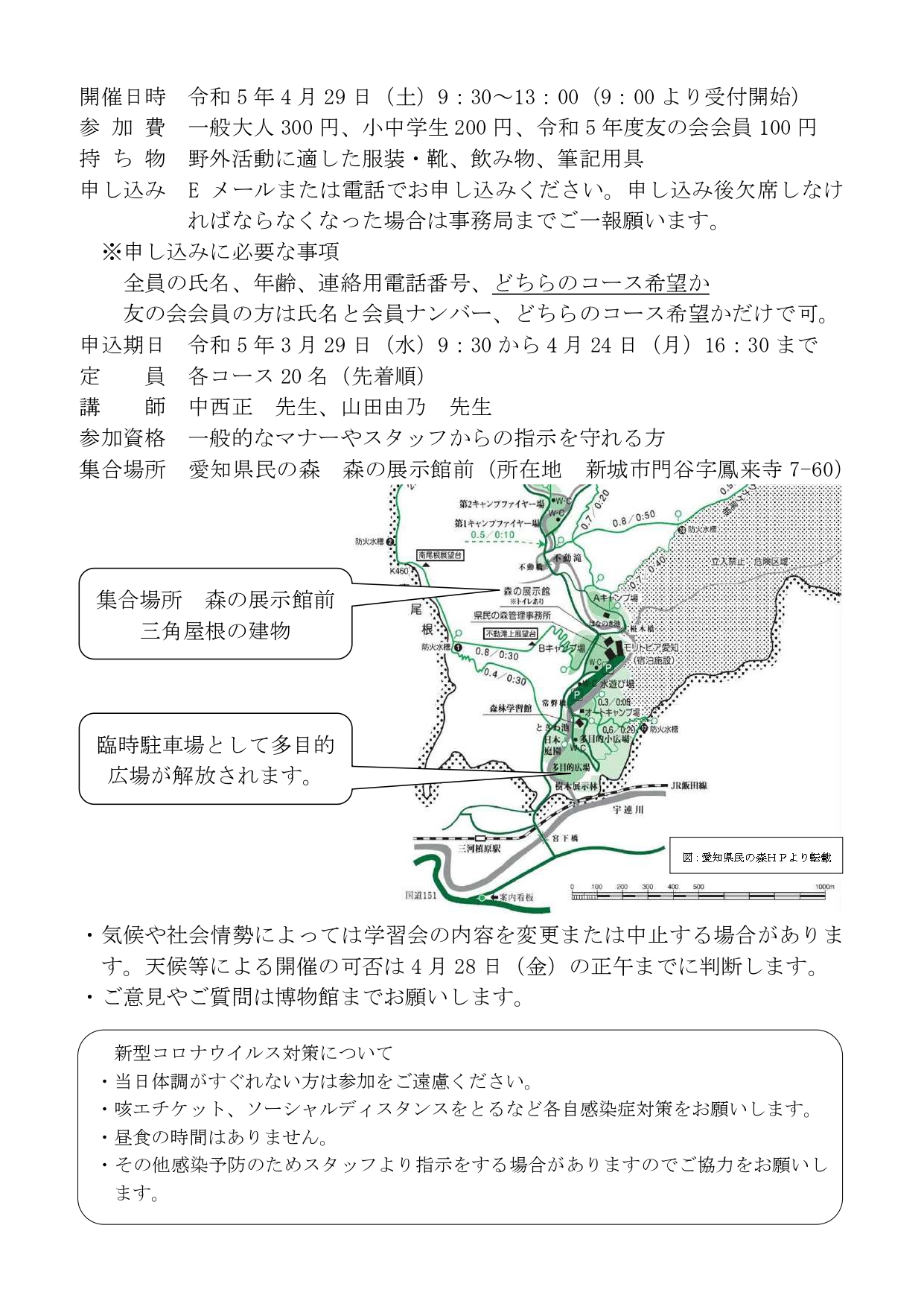 3月29日(水)9:30から4月24日(月)16:30までに電話またはメール(hri-hakubutukan1@city.shinshiro.lg.jp)でお申し込みください。