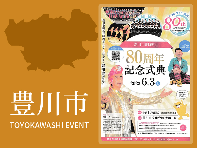 2023年6月1日に迎える豊川市制施行80周年を記念して、将来へのさらなる飛躍を誓う式典を開催します。