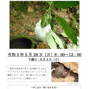 | 日時 | 2023年5月28日(日) 9:30から13:00 予備日 6月4日(日) |