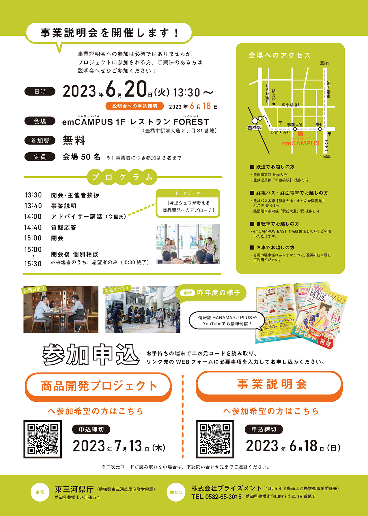 令和5年度 東三河の特産品を使った商品開発プロジェクト 事業説明会 参加申込フォーム
