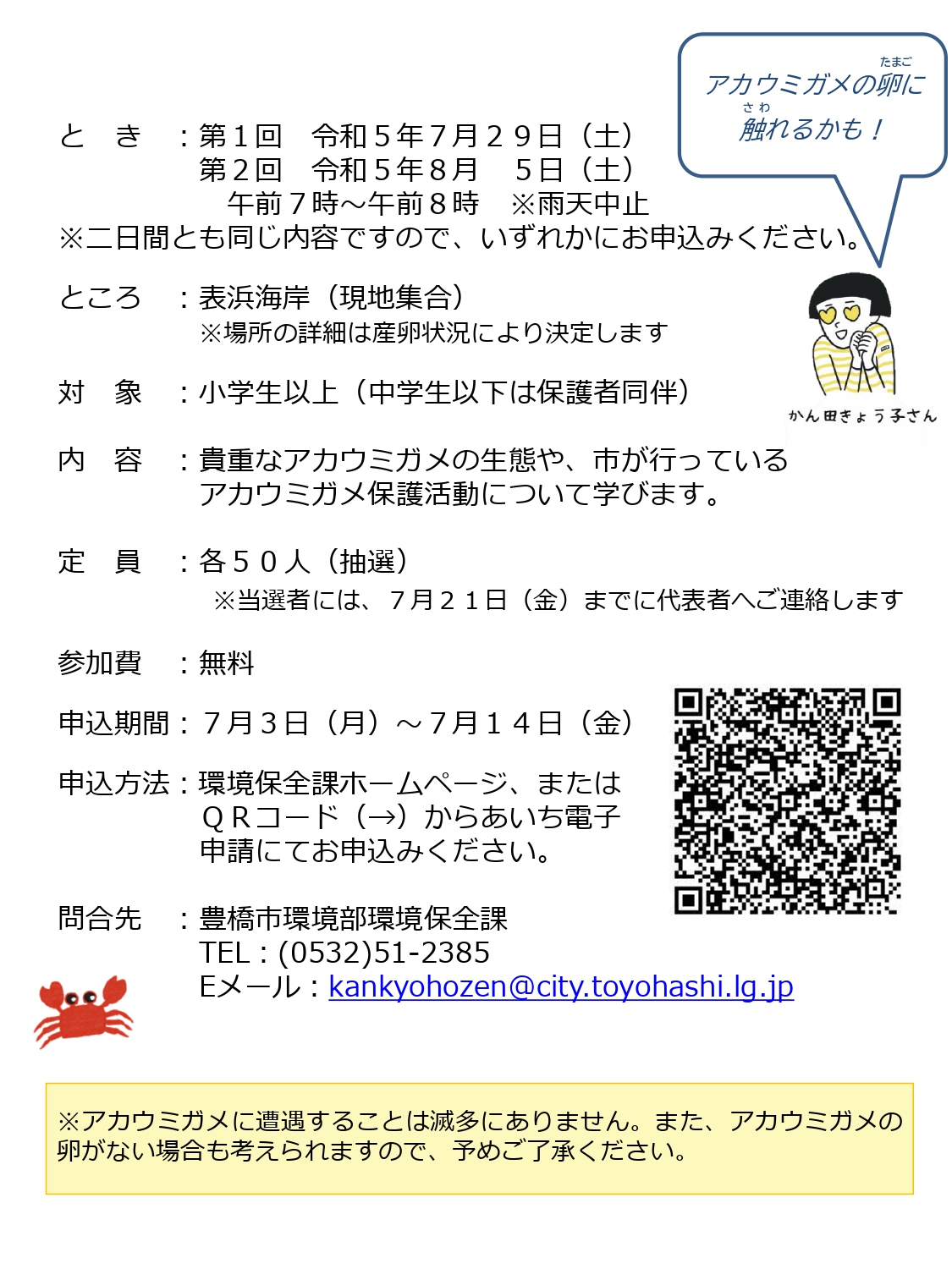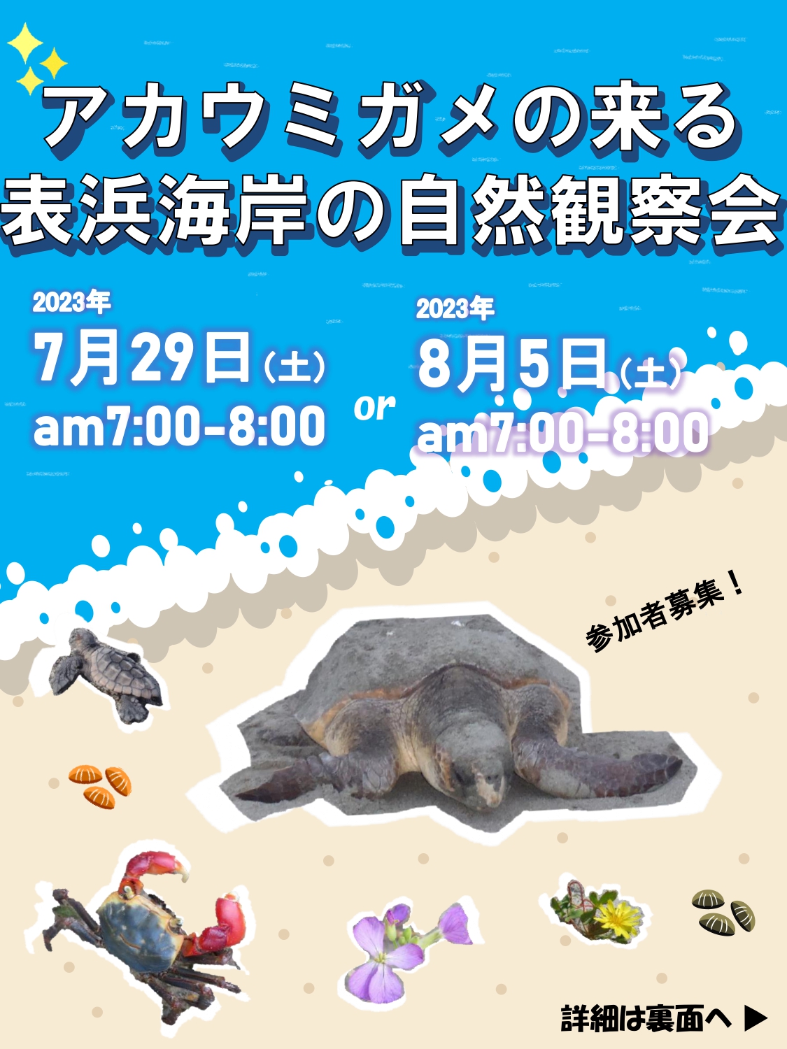 | 場所 | 表浜海岸(現地集合:集合場所は上陸・産卵状況により決定し、後日連絡します) |
