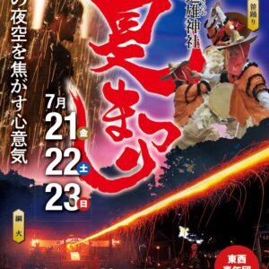 とりわけ煙火は400年以上の歴史があり、中でも参道に100メートルにわたって一直線に張られた二本の綱を伝って300本以上の花火が連続して発射される「綱火」は独特の煙火で、愛知県指定無形民俗文化財に指定されています。