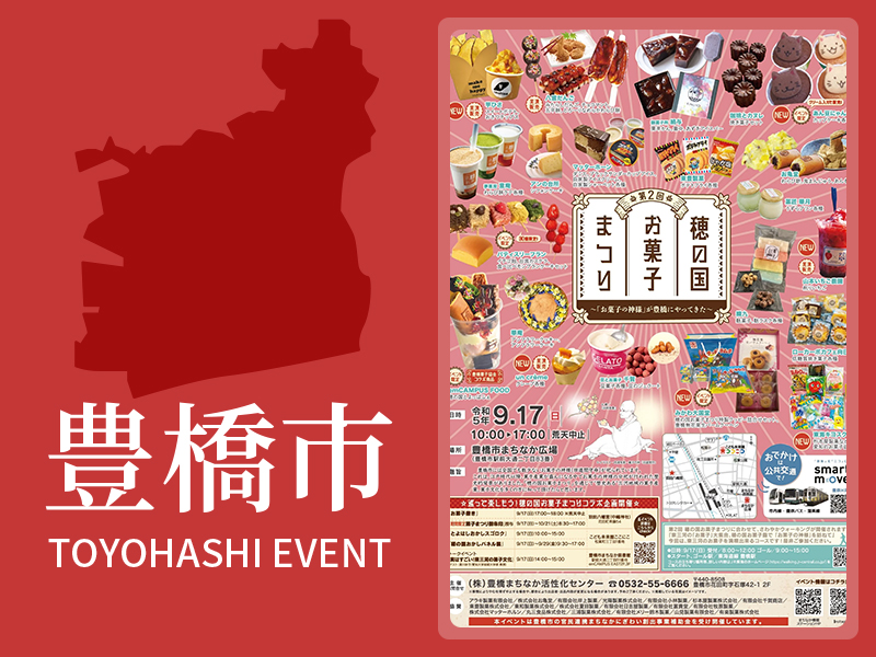 まちなかの各所で「お菓子」に関連するイベントを沢山開催しますので、一日かけて豊橋のお菓子を味わい尽くしちゃってください!