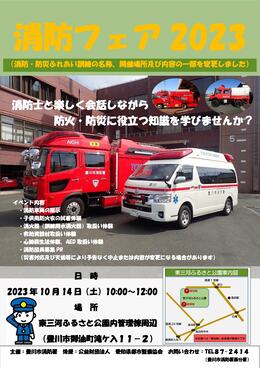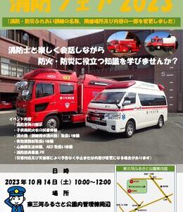 豊川市消防署では、市民の皆様に「防火・防災への関心」を高めていただくため「消防フェア2023」を開催します。