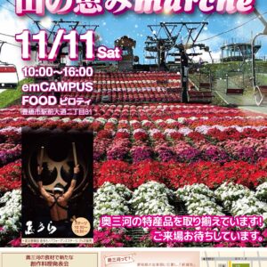 奥三河地域の特産品や体験が集まる「奥三河フェア山の恵みmarché(マルシェ)」がemCAMPUS(エムキャンパス) FOOD(フード) にて開催されます。