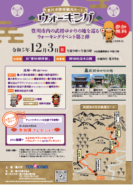 豊川市推奨観光ルートウォーキングは、チェックポイントでスタンプを集めてゴールを目指すウォーキングイベントです。