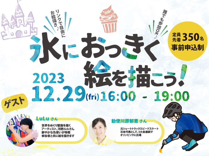 | 定員 | 先着350名(スケート体験+お絵描き50名、お絵描き300名) |