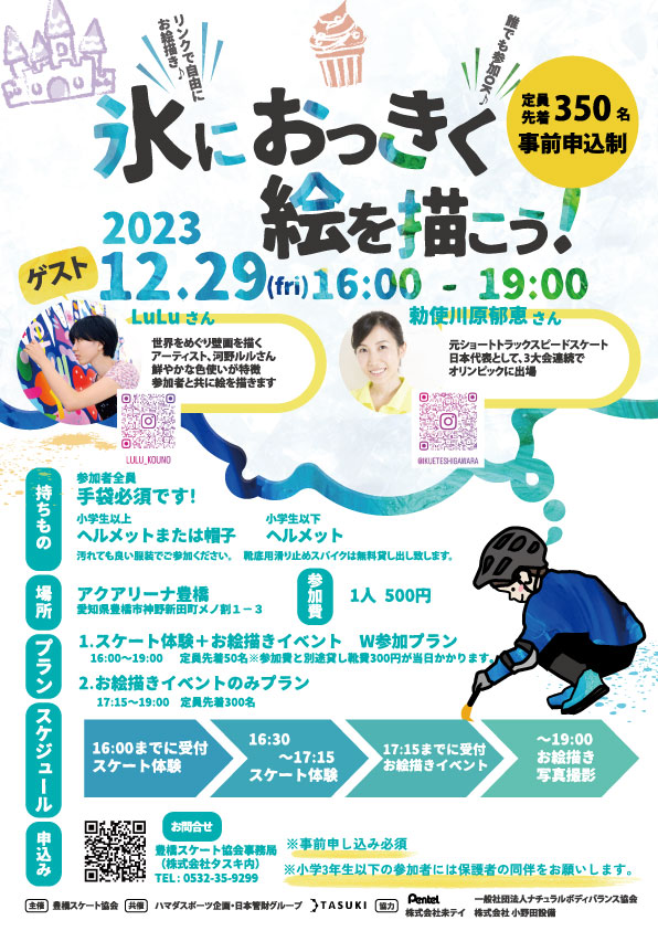 事前申込制 先着350名(スケート体験+お絵描き50名、お絵描き300名)