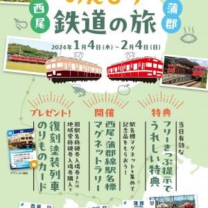 | 駅名標マグネットラリー台紙の入手方法 | 西尾駅または蒲郡駅で、名鉄フリーきっぷを提示 ※実施期間中有効な名鉄電車全線乗り放題フリーきっぷ全てが対象 |