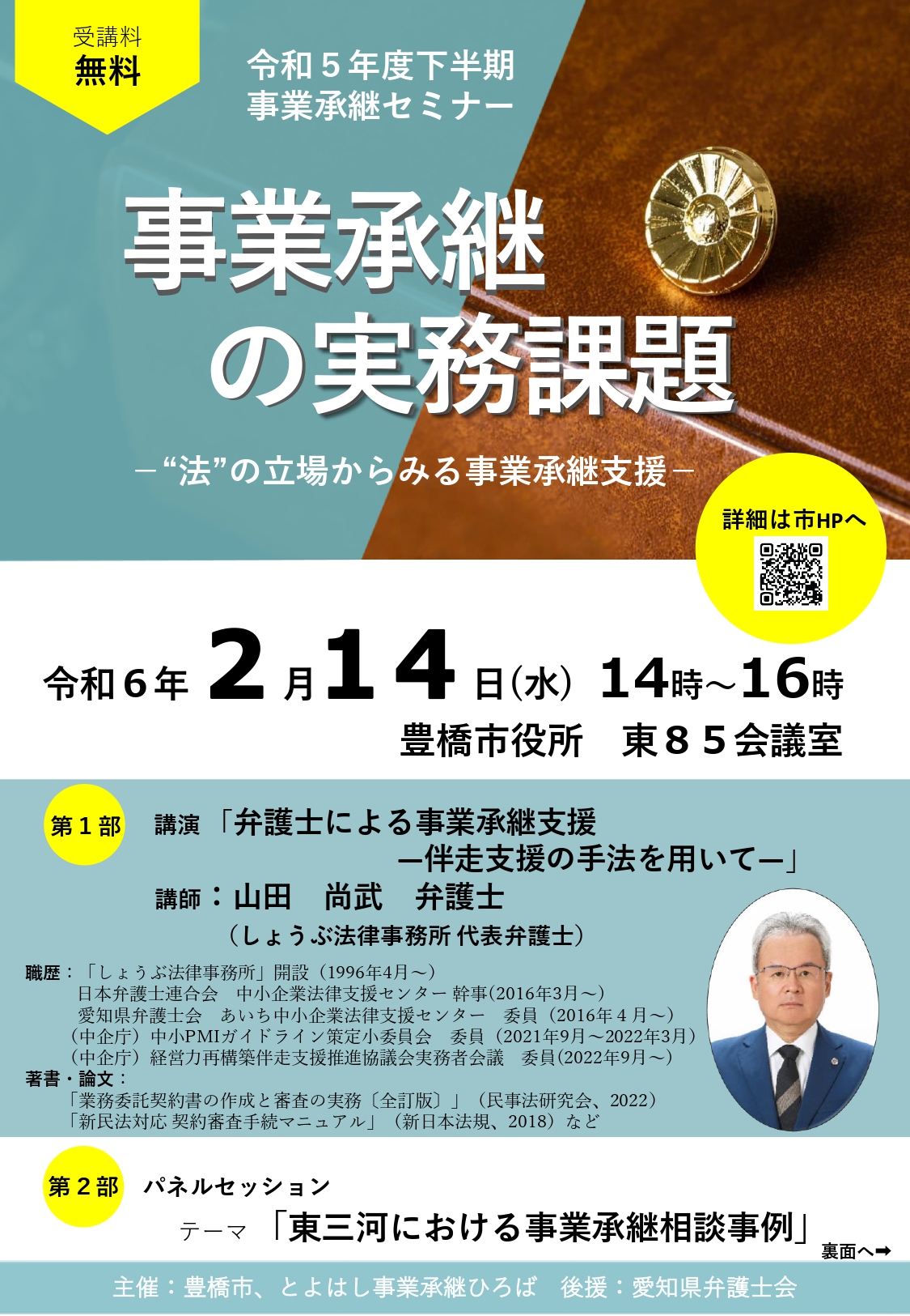 事業承継セミナー「事業承継の実務課題-”法”の立場からみる事業承継支援-」@豊橋市役所