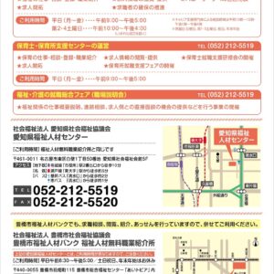 | お問い合わせ | 社会福祉法人 愛知県社会福祉協議会 愛知県福祉人材センター Tel:(052)212−5519 |