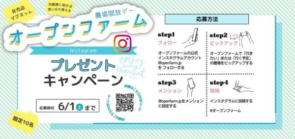 当選者の方には、6月中旬頃にインスタグラムアカウント〔@openfarm.jp〕よりDMを送らせていただきます。