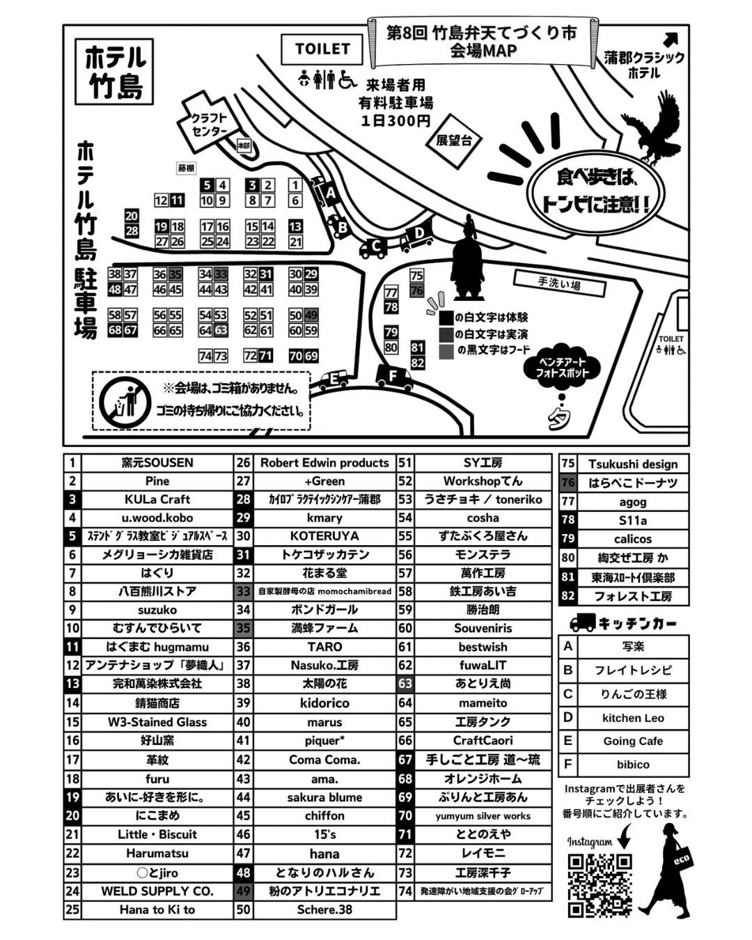 出展者詳細についてや最新情報は竹島弁天手づくり市のinstagram、facebookにてご確認頂けます。ぜひフォローしてください。