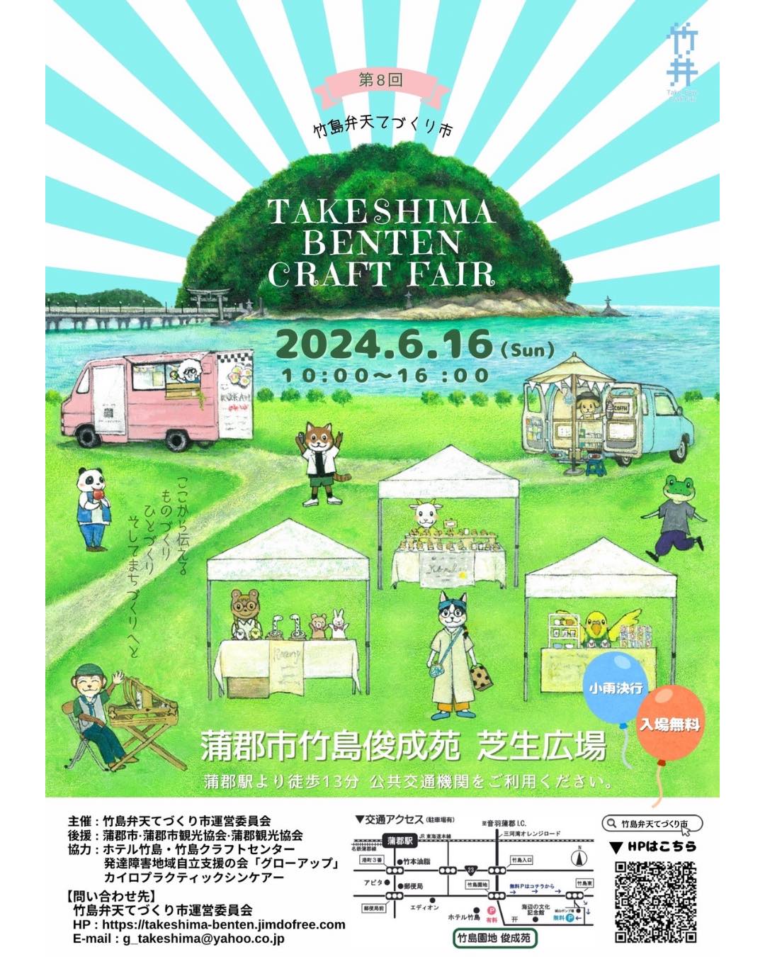 | お問い合わせ | 竹島弁天てづくり市運営委員会事務局 E-mail g_takeshima@yahoo.co.jp |