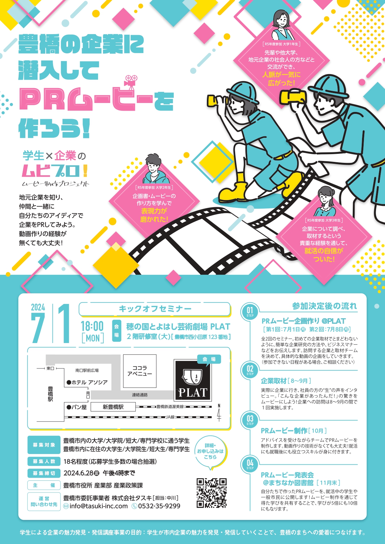 豊橋市内の大学・短大・専門学校に通う学生、豊橋市内在住の大学生・短大生・専門学生の皆さん!豊橋の企業に潜入してPRムービーを作りませんか?
