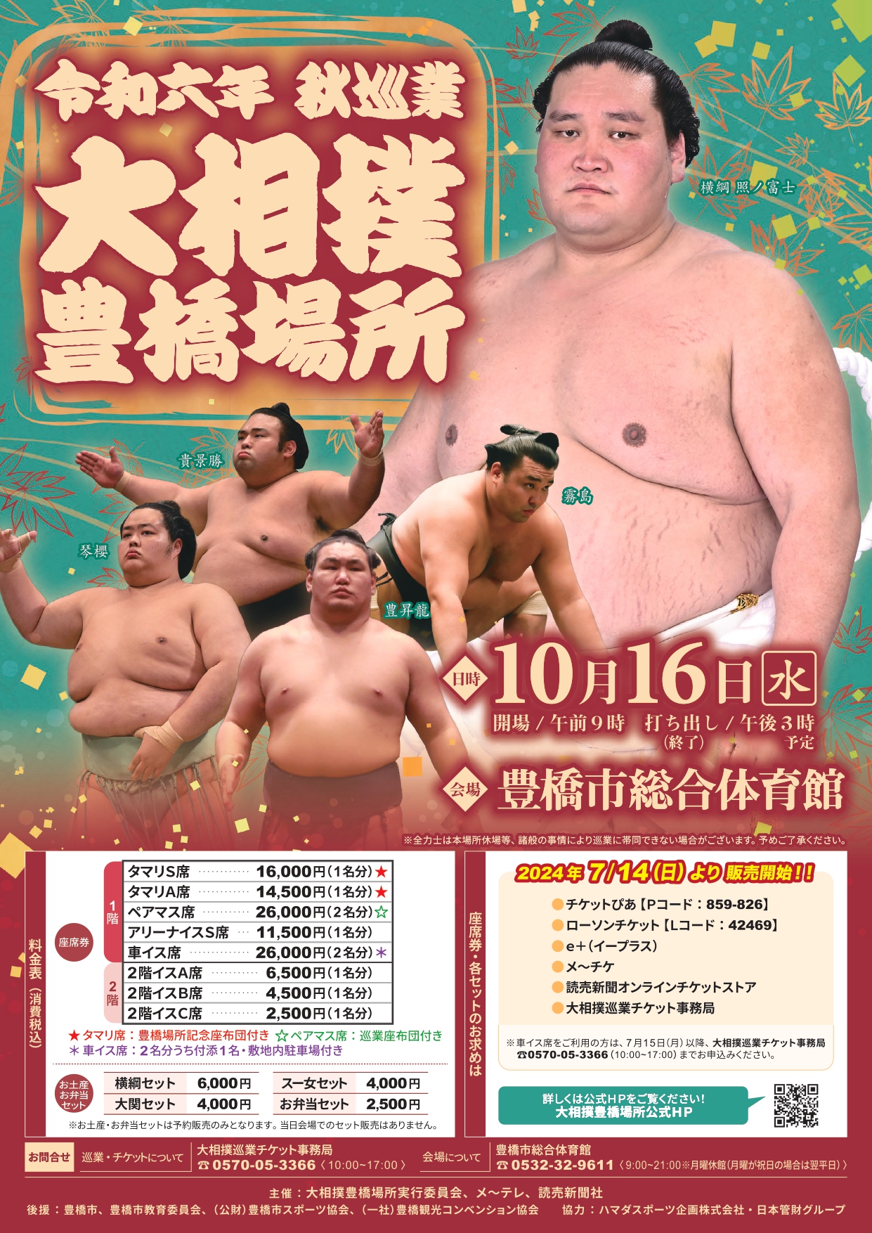 | 問合せ | 大相撲巡業チケット事務局(オペレーター対応10時から17時)