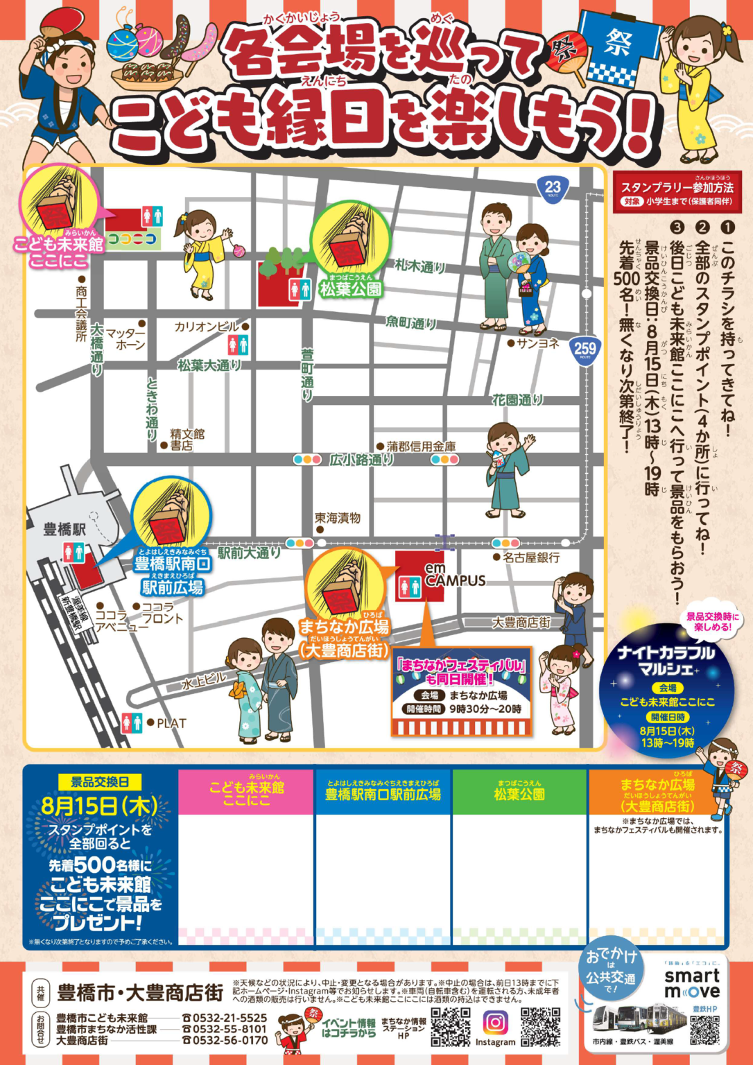 | 問合せ | 豊橋市こども未来館…TEL:0532-21-5525 豊橋市まちなか活性課…TEL:0532-55-8101 大豊商店街…TEL:0532-56-0170 |