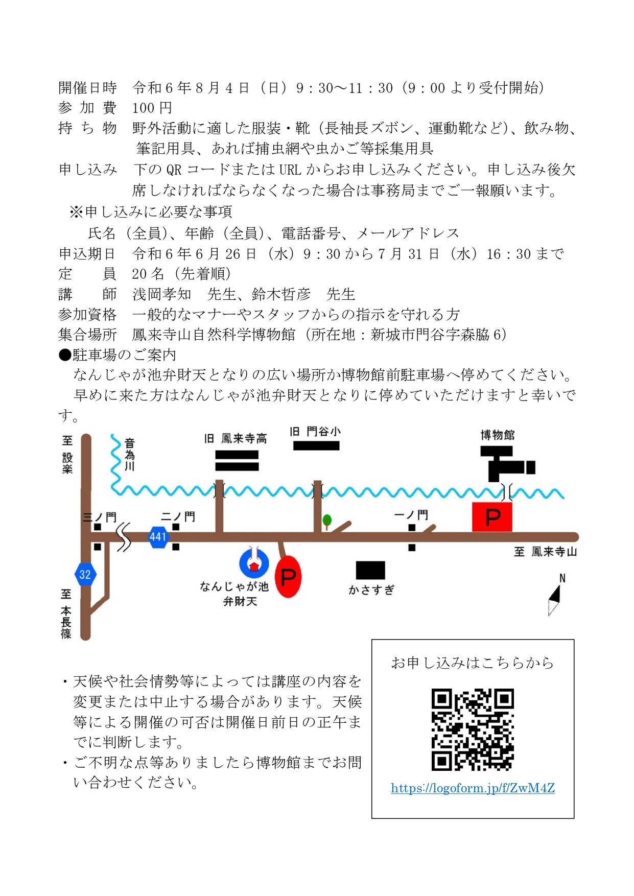 天候や社会情勢等によっては講座の内容を変更または中止する場合があります。天候等による開催の可否は開催日前日の正午までに判断します。