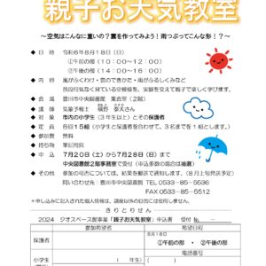 風がふくわけ・雲のできかた・雨がふるしくみなど、普段何気なく見ている空模様を、実験を交えて親子で楽しく学びます。