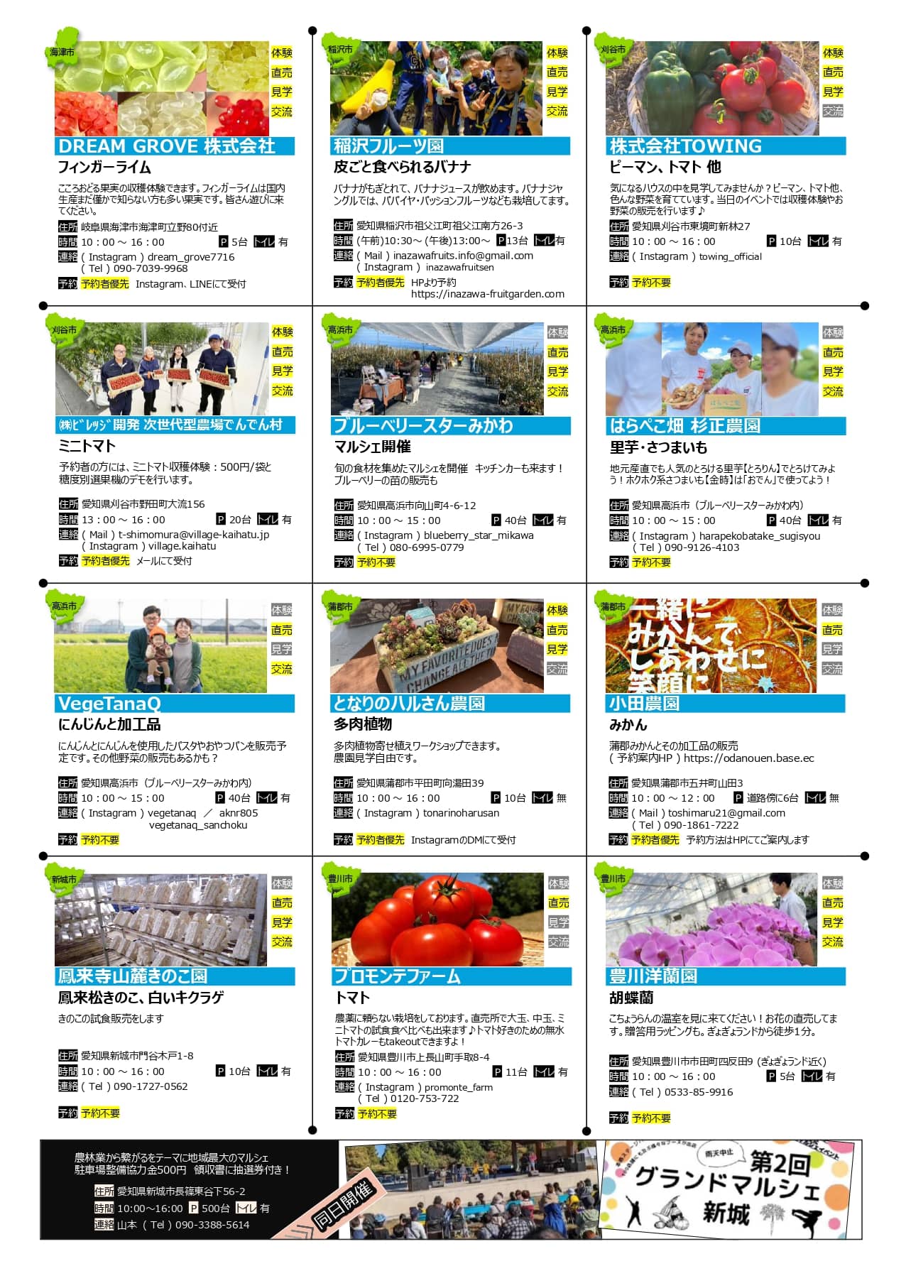 | 予約 | 事前予約が必要な農場もございます。 詳細は、チラシ・HPをご確認ください。 |