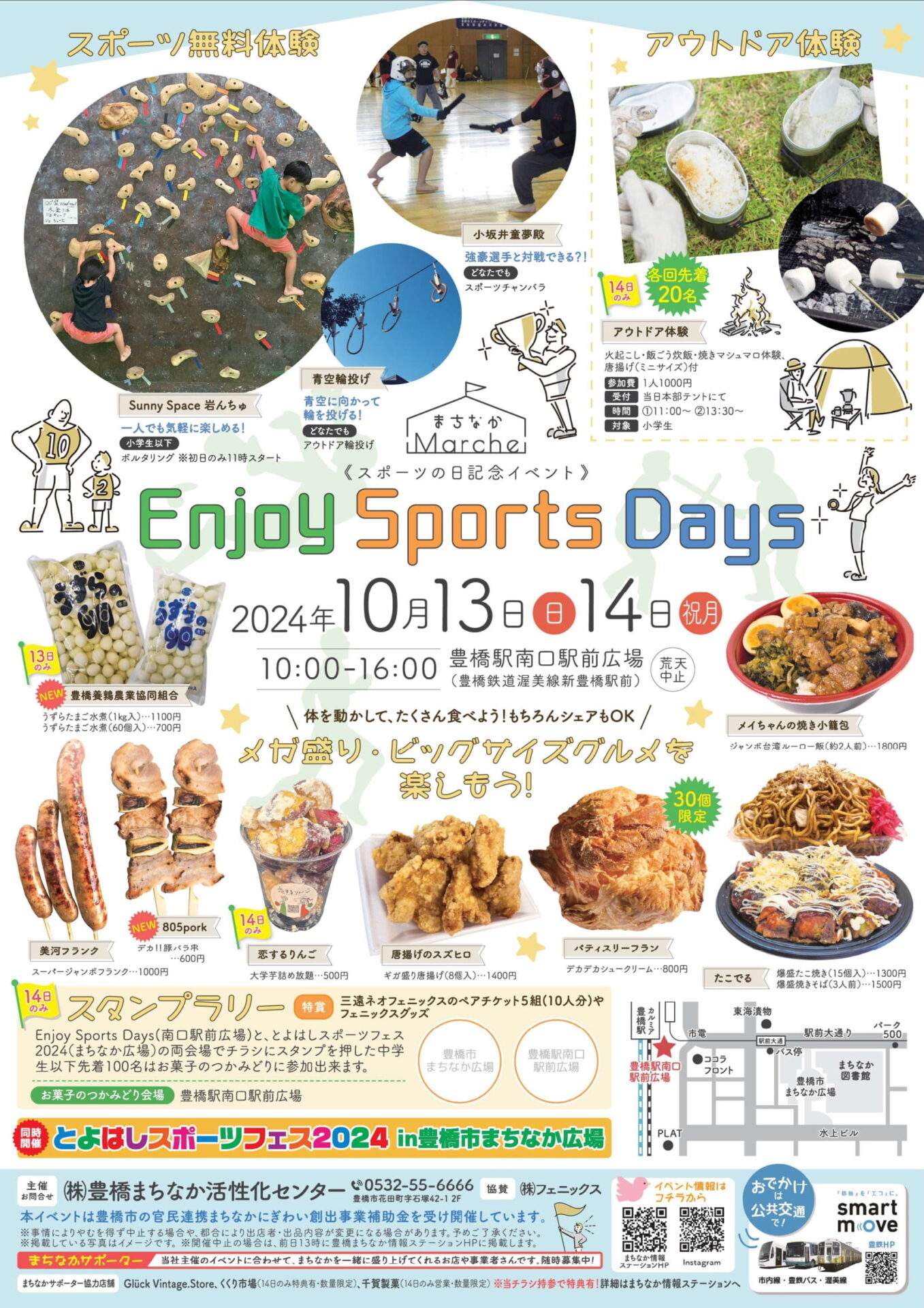 まちなかマルシェ Enjoy Sports Days: 2024年10月13(日)・14日(祝・月) 10:00~16:00 とよはしスポーツフェス2024: |