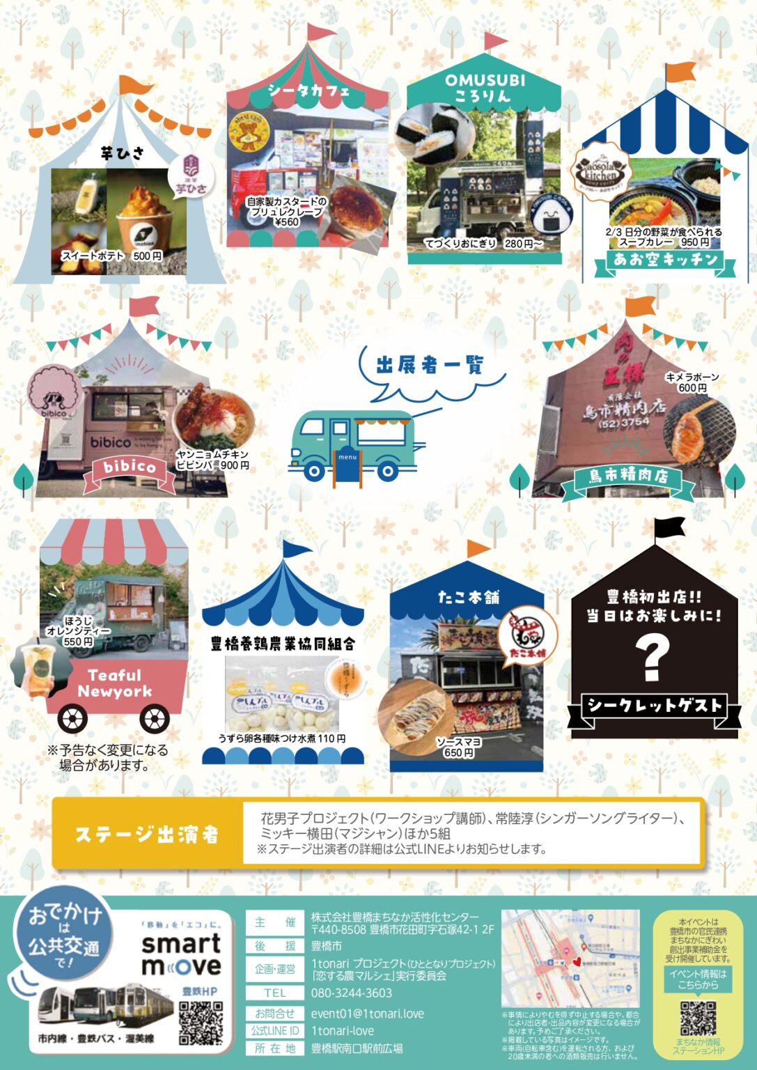チラシに掲載していた公式LINEがアカウントが管理者側の都合で削除されしまったため、新しいアカウントを掲載いたしました。別途、一般参加者の方にはInstagram広告でも上記についてお詫びをさせていただきます。当日会場で紙クーポンを配布する予定です。