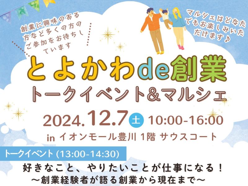 また、同会場にて、とよかわ創業・起業支援ネットワークの支援を受けて豊川市内で創業された事業者によるマルシェを開催します。是非ご来場ください。