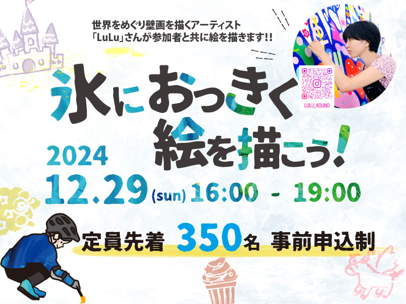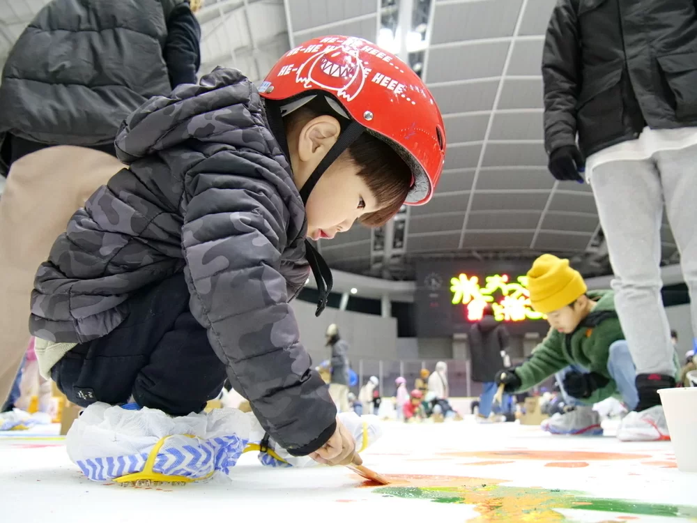 さらに、アーティストが描いた絵は1月3日(金)まで氷の中に閉じ込めて展示するので、期間中はアートの上を滑る特別な体験ができます!
