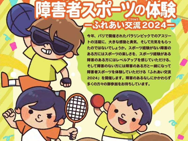 障害者スポーツの体験・ふれあい交流2024の参加者を募集します。参加対象者は、愛知県内にお住まいの方、または施設等に入所・通所・通学している方で、運動することに健康上問題の無い方です。