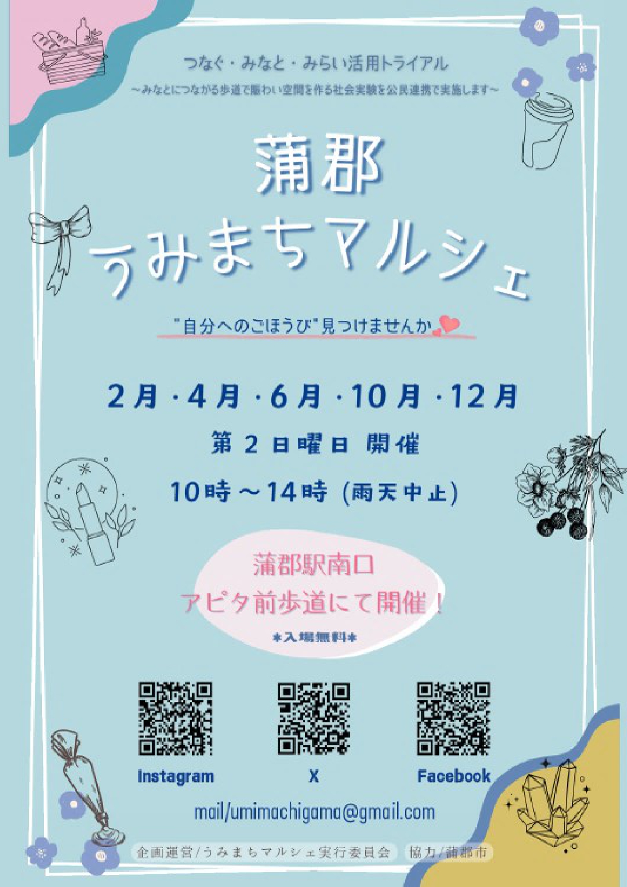 | お問い合わせ | 蒲郡うみまちマルシェ実行委員会 メール:umimachigama@gmail.com |