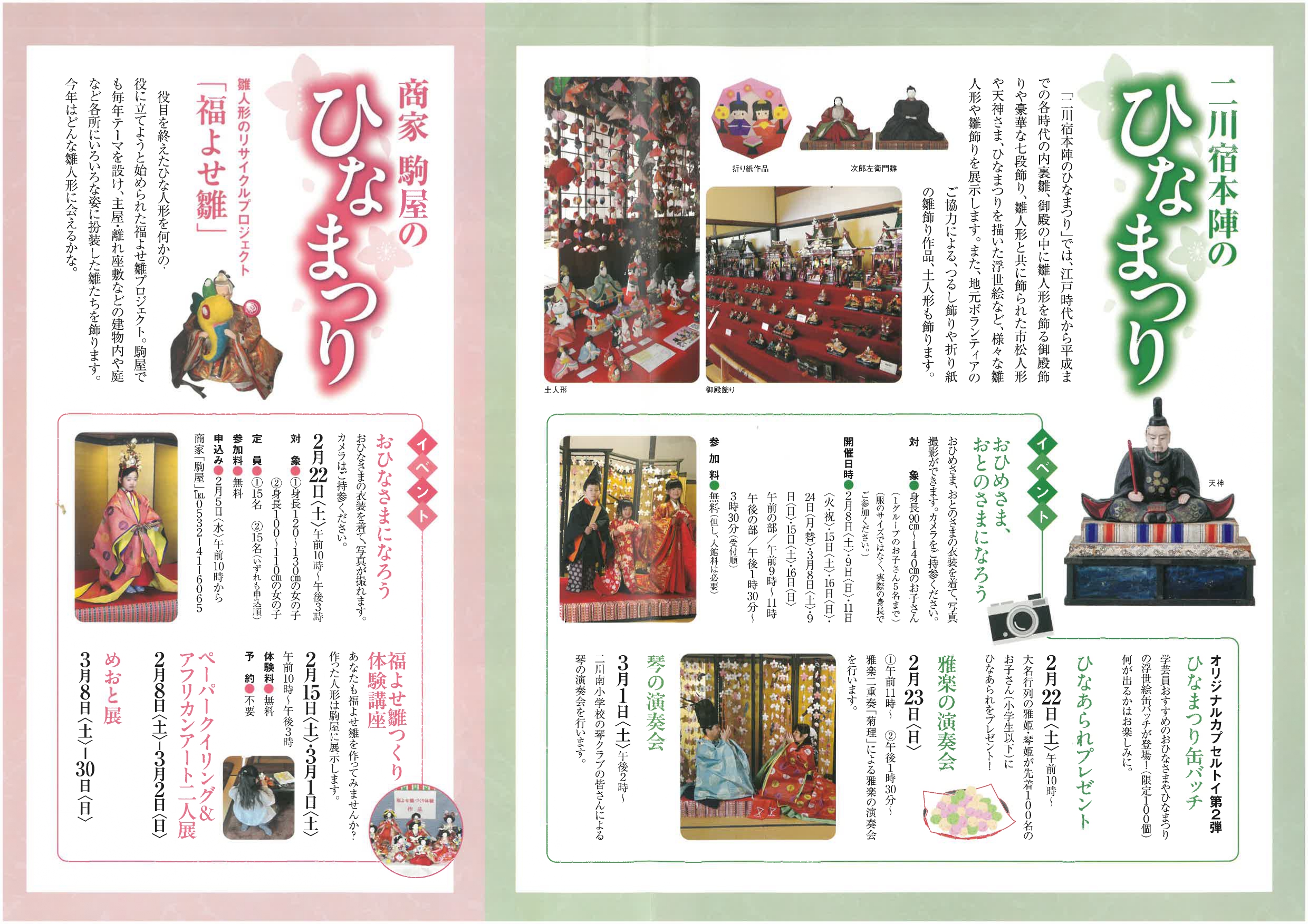 また、地元ボランティアの協力によるつるし飾りや折り紙の雛飾り作品、土人形も展示します。