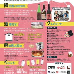 普段見られない酒造りの裏側を見学できたり、搾りたてホヤホヤのフレッシュな新酒を楽しめるイベントです。