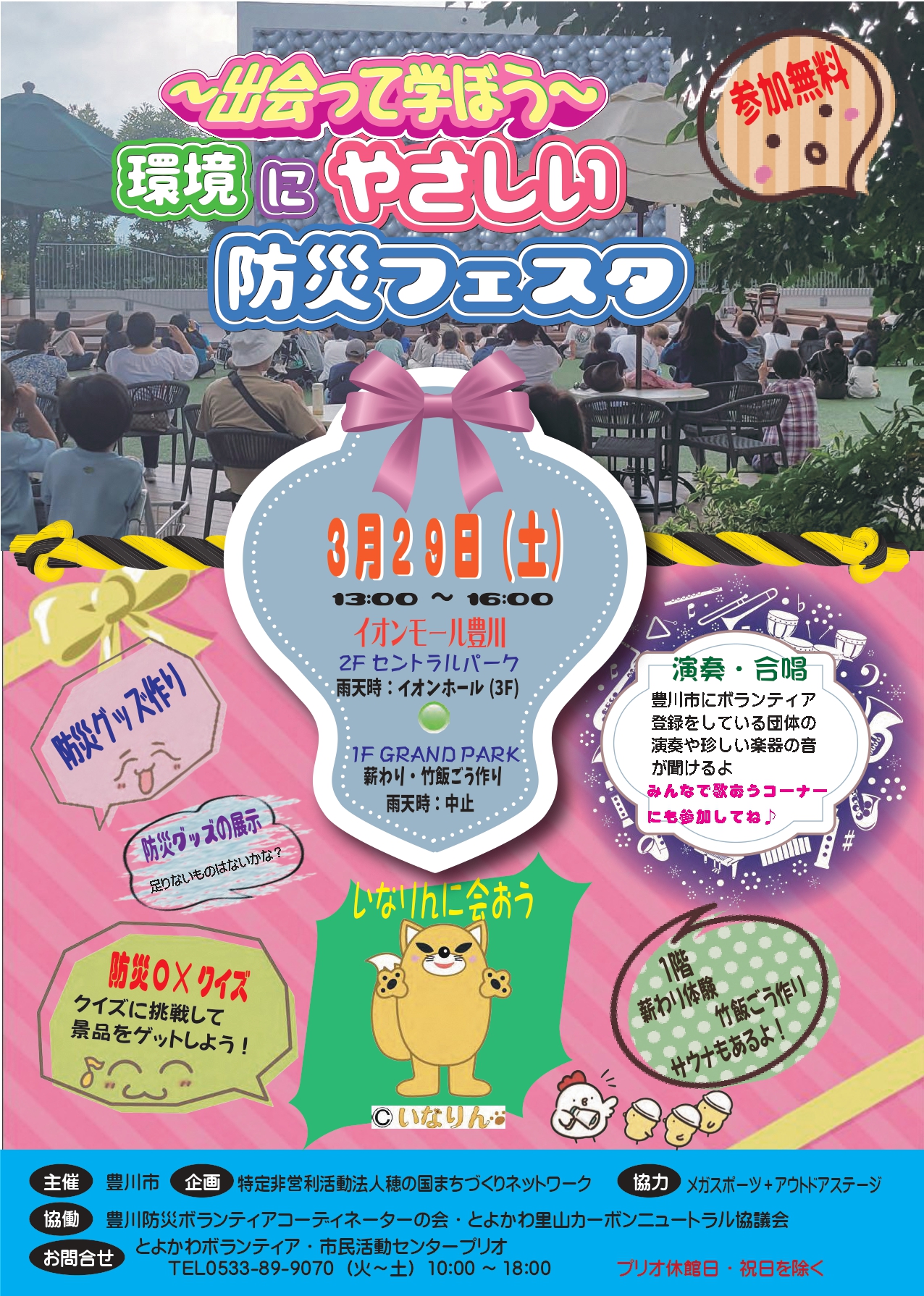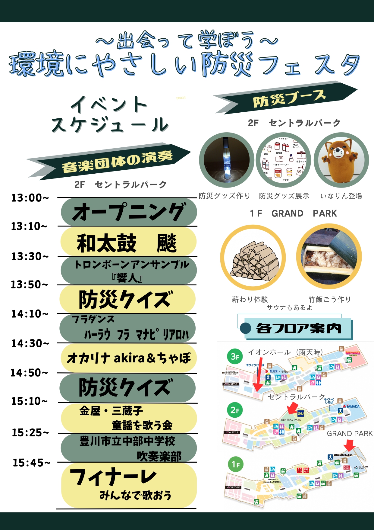 | 場所 | イオンモール豊川(豊川市白鳥町兎足1−16) ・2F セントラルパーク(雨天時:3Fイオンホール) ・1F GRAND PARK(雨天時:中止) |