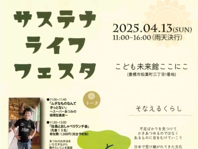 | 詳細 | サステナライフフェスタHP ※本ページは2025.4.5時点の情報になります。 |
