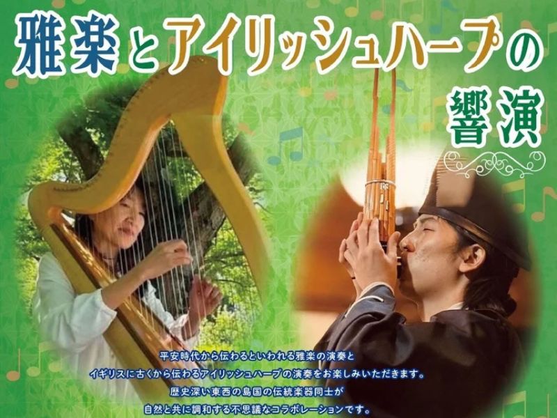 平安時代から伝わるといわれる雅楽の演奏とイギリスに古くから伝わるアイリッシュハープの演奏をお楽しみいただきます。