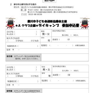 連絡先:〒441-0292 豊川市赤坂町松本250番地 豊川市子ども会連絡協議会事務局(豊川市教育委員会 生涯学習課内)