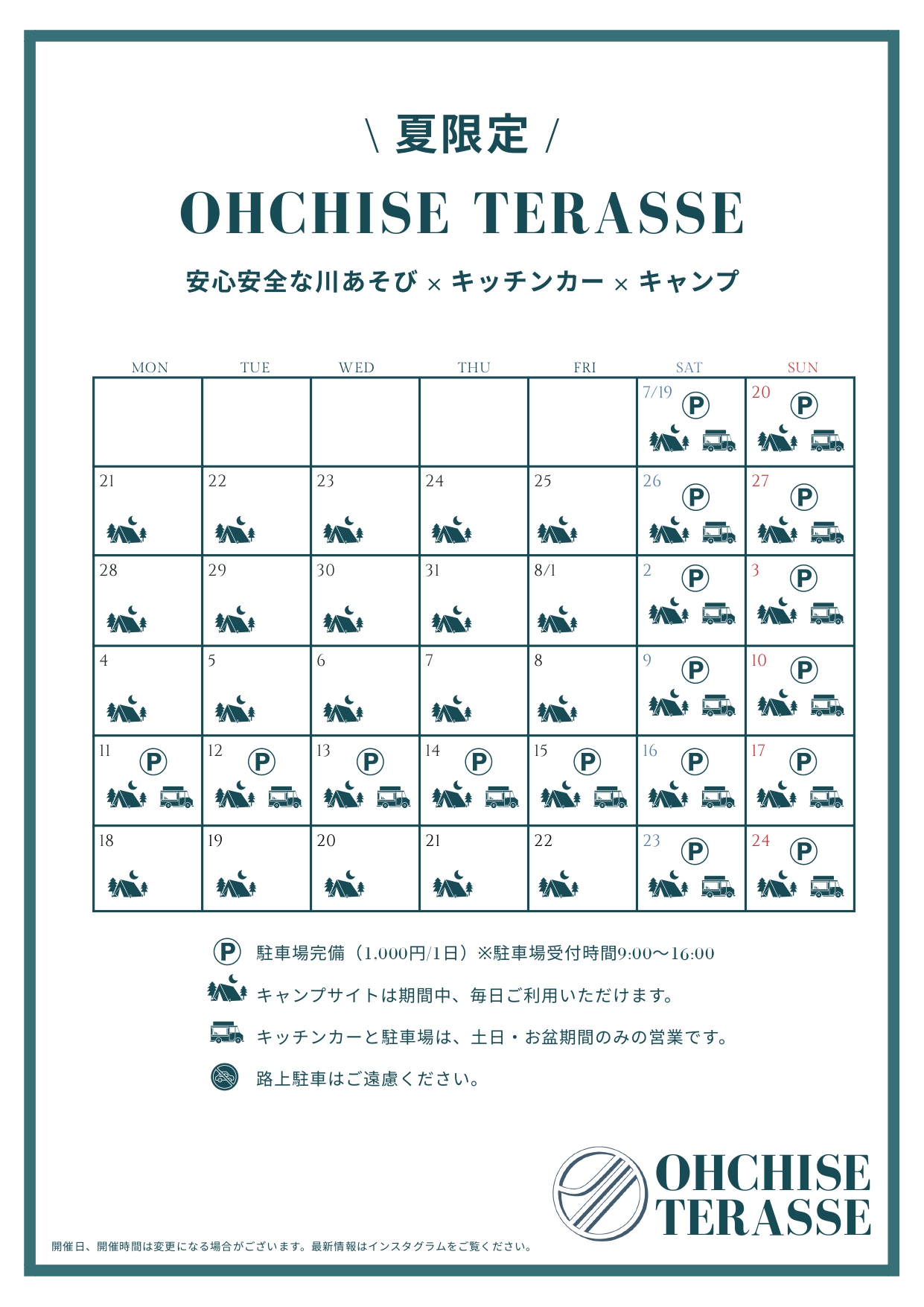 東栄町を流れる大千瀬川流域にある「東栄浄水公園エリア」を活用し、安心して川遊びができる環境整備、キッチンカーなどの出店企画、キャンプサイトの提供などを行う夏限定の催しです。